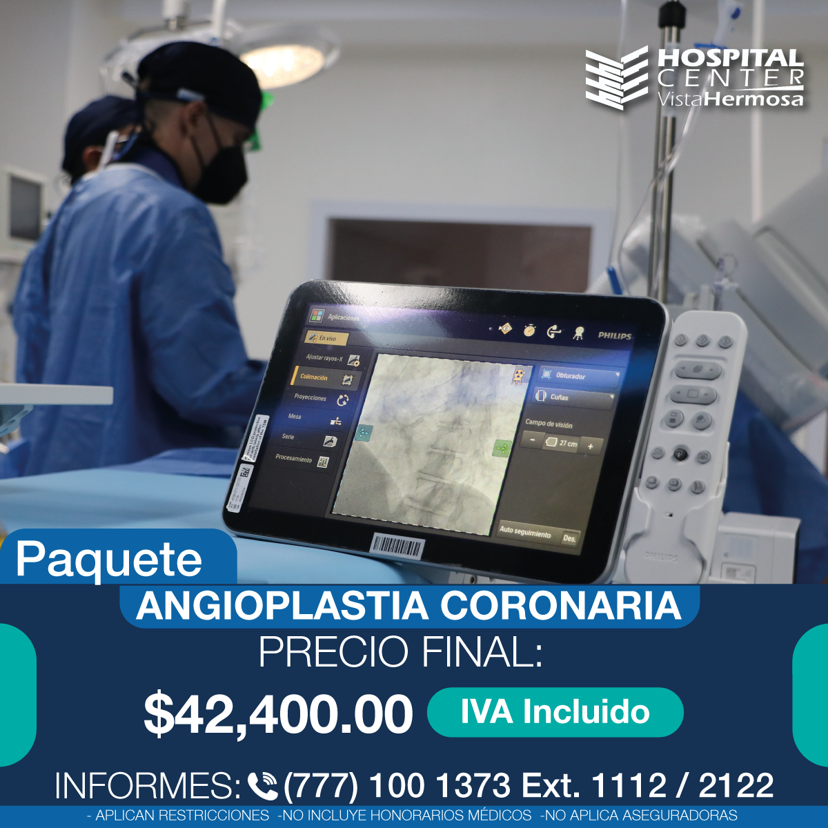 Paquete Angioplastia Coronaria: $42, 400.00. IVA incluido.