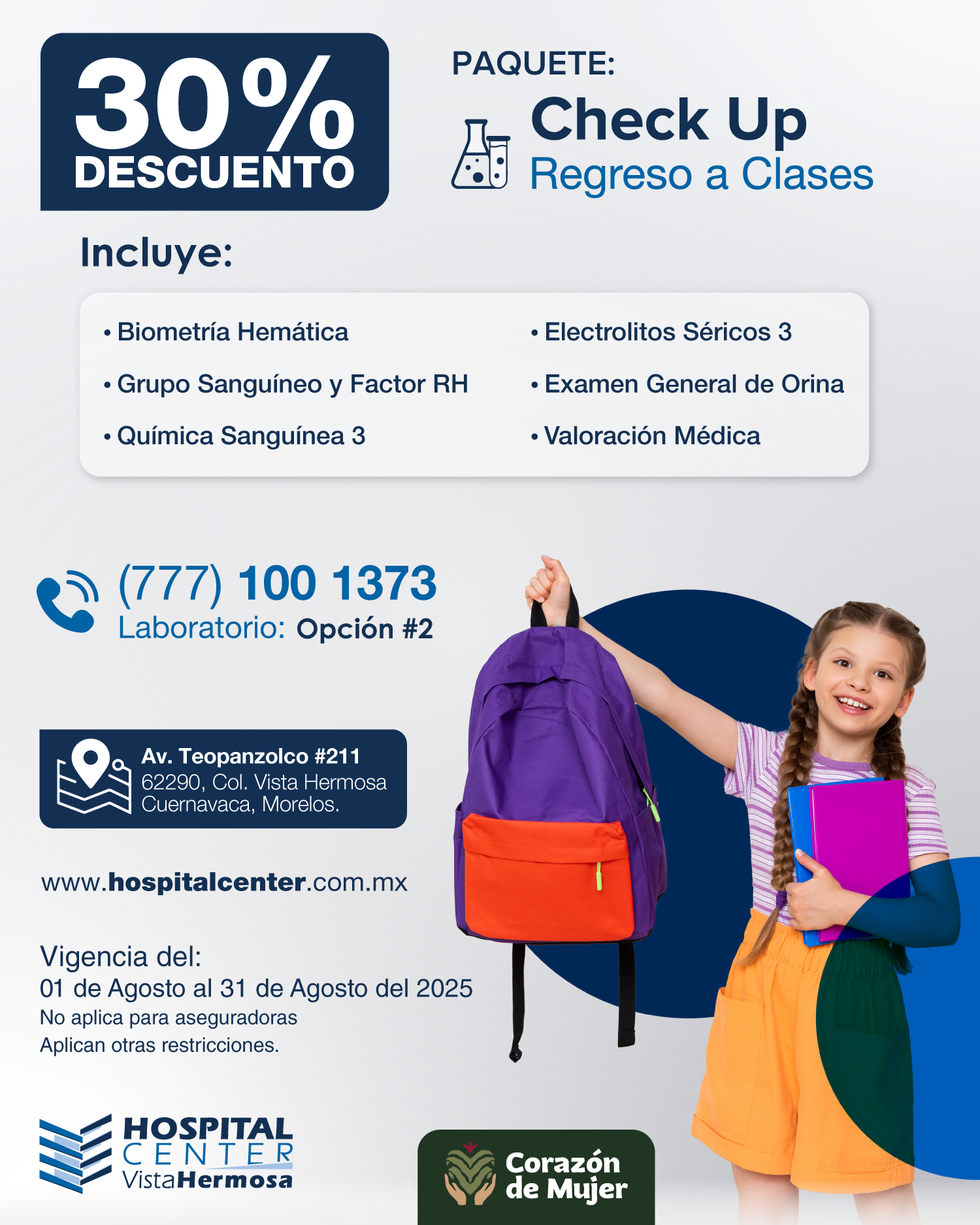 PROMOCION AGOSTO - 30% DESCUENTO CHECK UP REGRESO A CLASES